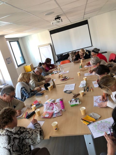 Les ateliers hebdomadaires de ARA Dans les locaux du Centre de prévention AGIRC-ARRCO à Nice ouest L'atelier MandalaL'atelier d'écriture créative